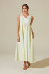 Is wearing our Loukia Dress from Knidos collection in ecru colour